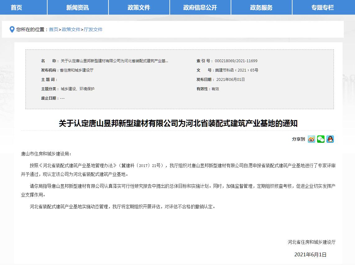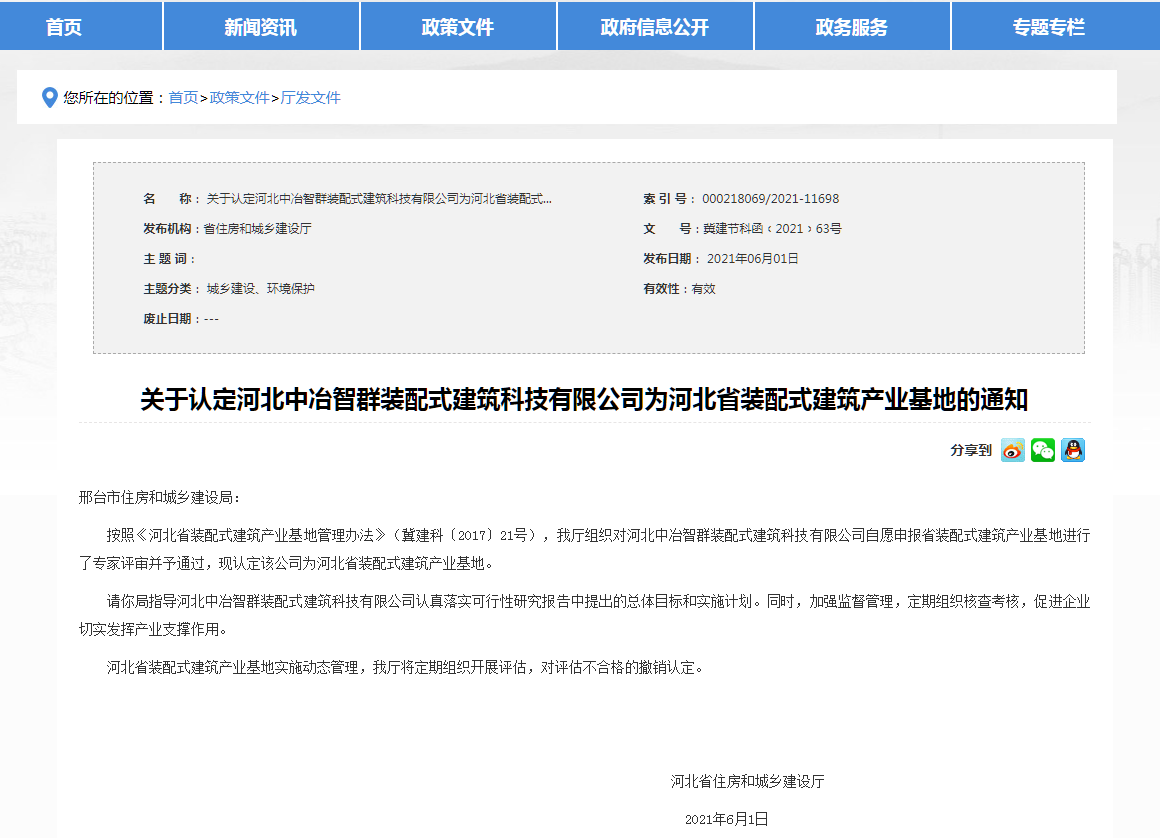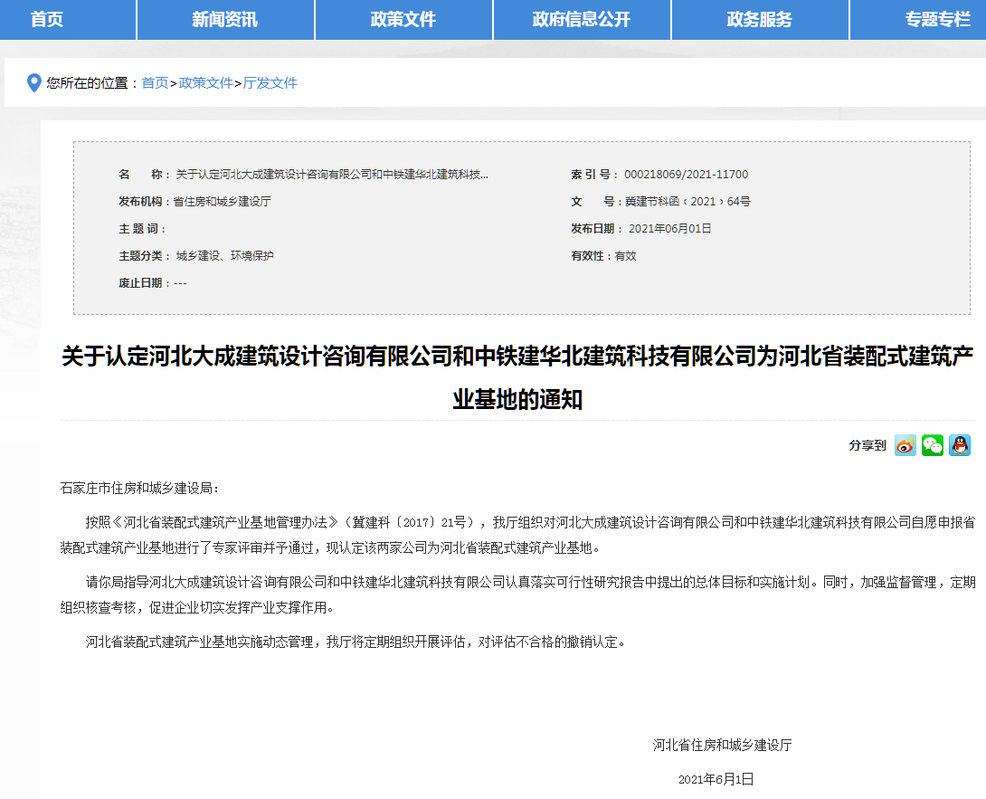 近日,河北省住房和城鄉(xiāng)建設(shè)發(fā)布:《我省新認定4處“河北省裝配式建筑產(chǎn)業(yè)基地”》,分別是河北大成建筑設(shè)計咨詢有限公司、中鐵建華北建筑科技有限公司、唐山昱邦新型建材有限公司、河北中冶智群裝配式建筑科技有限公司。