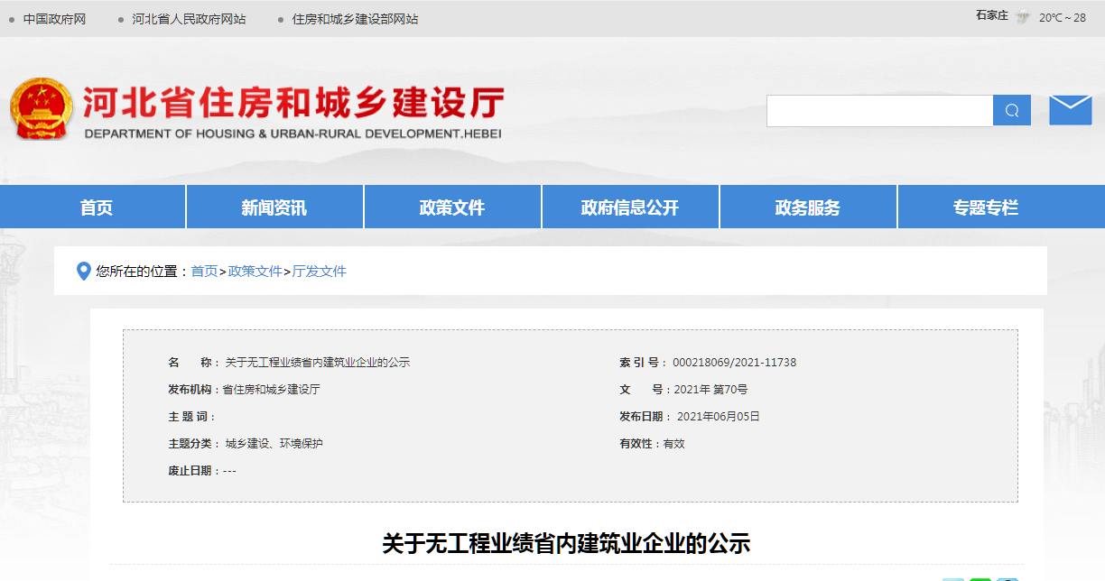 為進(jìn)一步規(guī)范省內(nèi)建筑業(yè)企業(yè)市場行為,推動我省建筑業(yè)高質(zhì)量發(fā)展,現(xiàn)對2019-2020年度無工程業(yè)績省內(nèi)建筑業(yè)企業(yè)予以公示(企業(yè)名單詳見附件)。