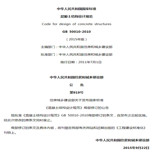 本規范由住房和城鄉建設部負責管理和對強制性條文的解釋,由中國建筑科學研究院負責具體技術內容的解釋。執行本規范過程中如有意見或建議,請寄送中國建筑科學研究院國家標準《混凝土結構設計規范》管理組(地址:北京市北三環東路30號,郵編:100013)。