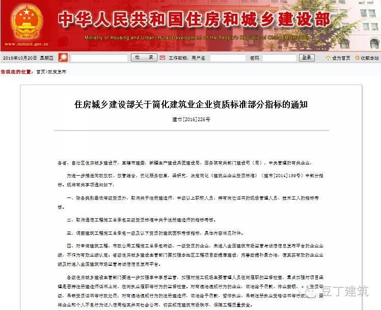 解讀住房城鄉(xiāng)建設部關于簡化建筑業(yè)企業(yè)資質標準部分指標的通知 建市[2016]226號
