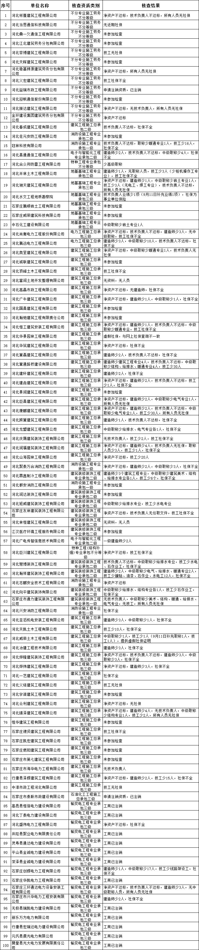 本次共核查了238家建筑業企業,其中,41家達到資質標準要求,197家不合格(含工商已注銷企業14家,申請注銷資質企業4家,未參加檢查企業44家)。